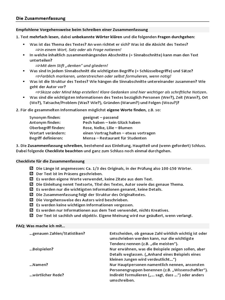 Du möchtest wissen, wie man eine gelungene textzusammenfassung schreibt.